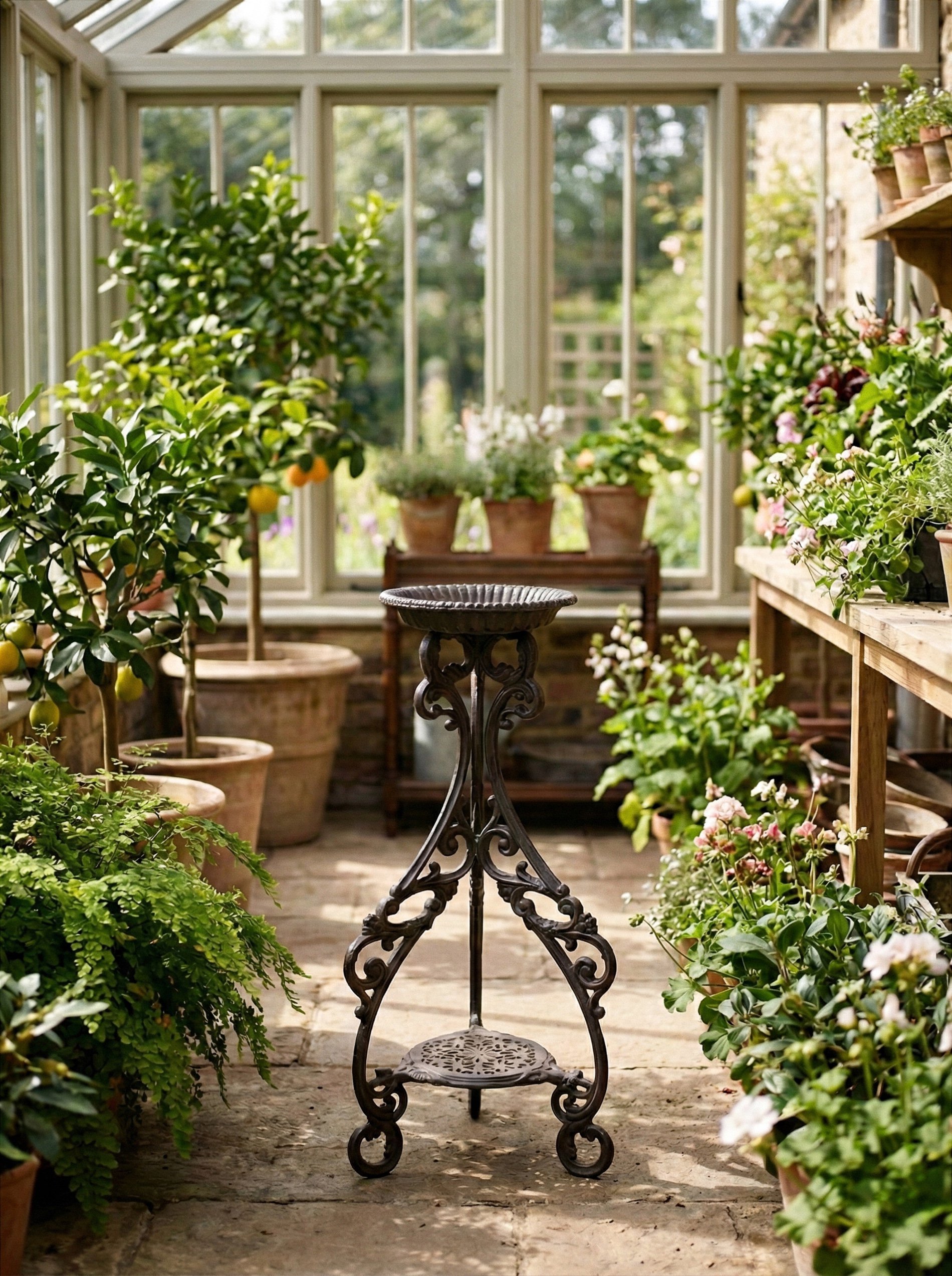Här hoppar hjärtat till, vill jag lova! Helt fantastisk piedestal av massivt, dekorerat gjutjärn med brunsvartpatinerad finish. Tung, otroligt gedigen piedestal som kommer att smycka trädgårdsrummet, uterummet, balkongen, vardagsrummet eller offentlig miljö i vidare generationer. Tips! Om du inte vill att finishen ska patineras av väder och vind, kan du pensla din järnmöbel med till exempel kallpressad rå linolja eller spraya en matt klarlack öven den.