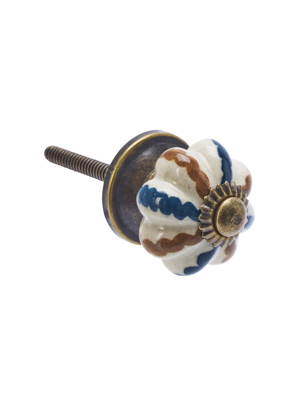 Rund, vacker handmålad skåpsknopp för lådor och skåp. Stengods/metall Ca D3 cm