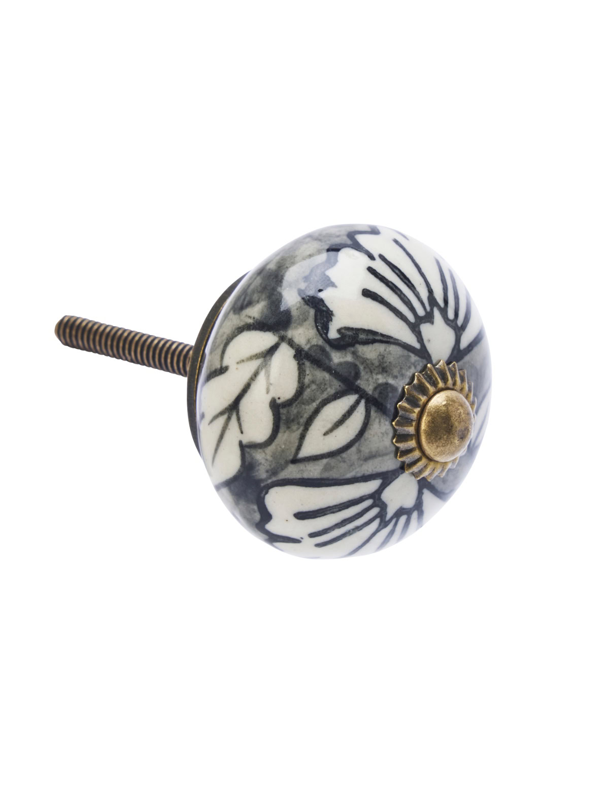 Rund, vacker handmålad skåpsknopp för lådor och skåp. Stengods/metall Ca D4 cm