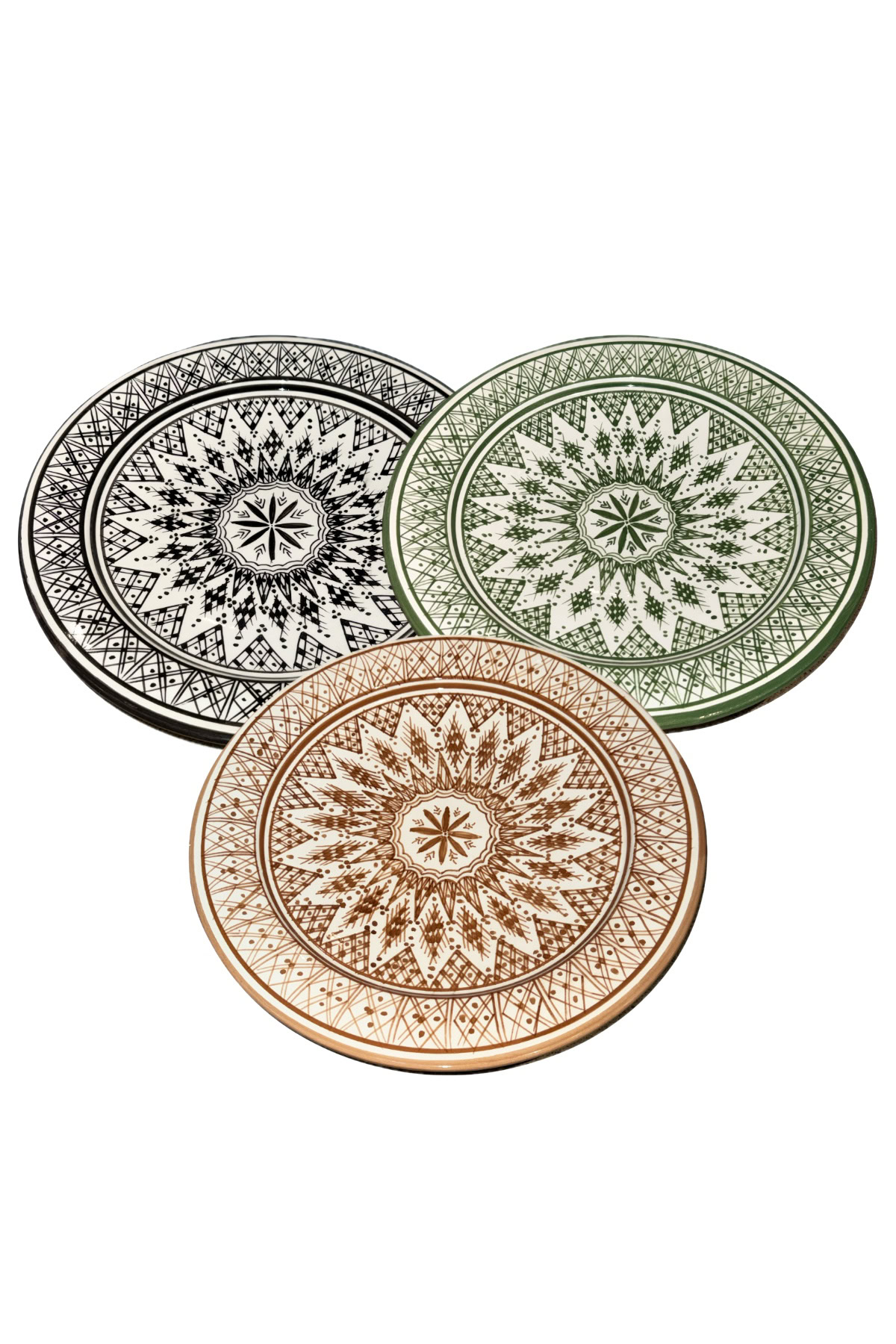 Alldeles ljuvliga handmålade uppläggningsfat från Marocko. Denna genuina marockanska keramik bär oemotståndliga nyanser på krackelerad botten. Servera snittar, lägg upp frukt och låt keramikfatet bli ett smycke på bordet däremellan. Välj mellan olika färgsättningar och motiv. Eftersom faten är handmålade kan det skilja något mellan toner och vissa målade dekorelement, vilket speglar det genuina hantverket.