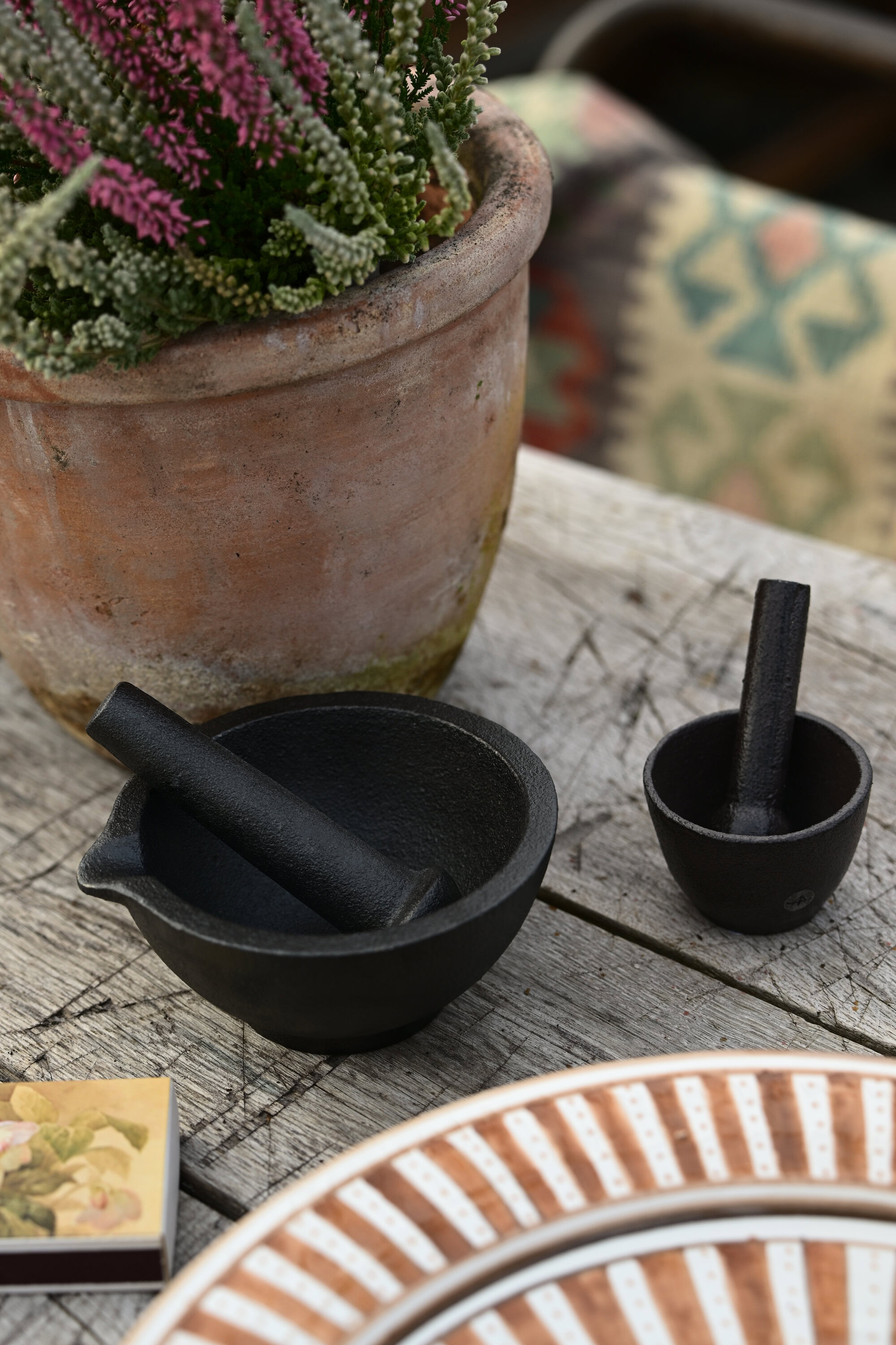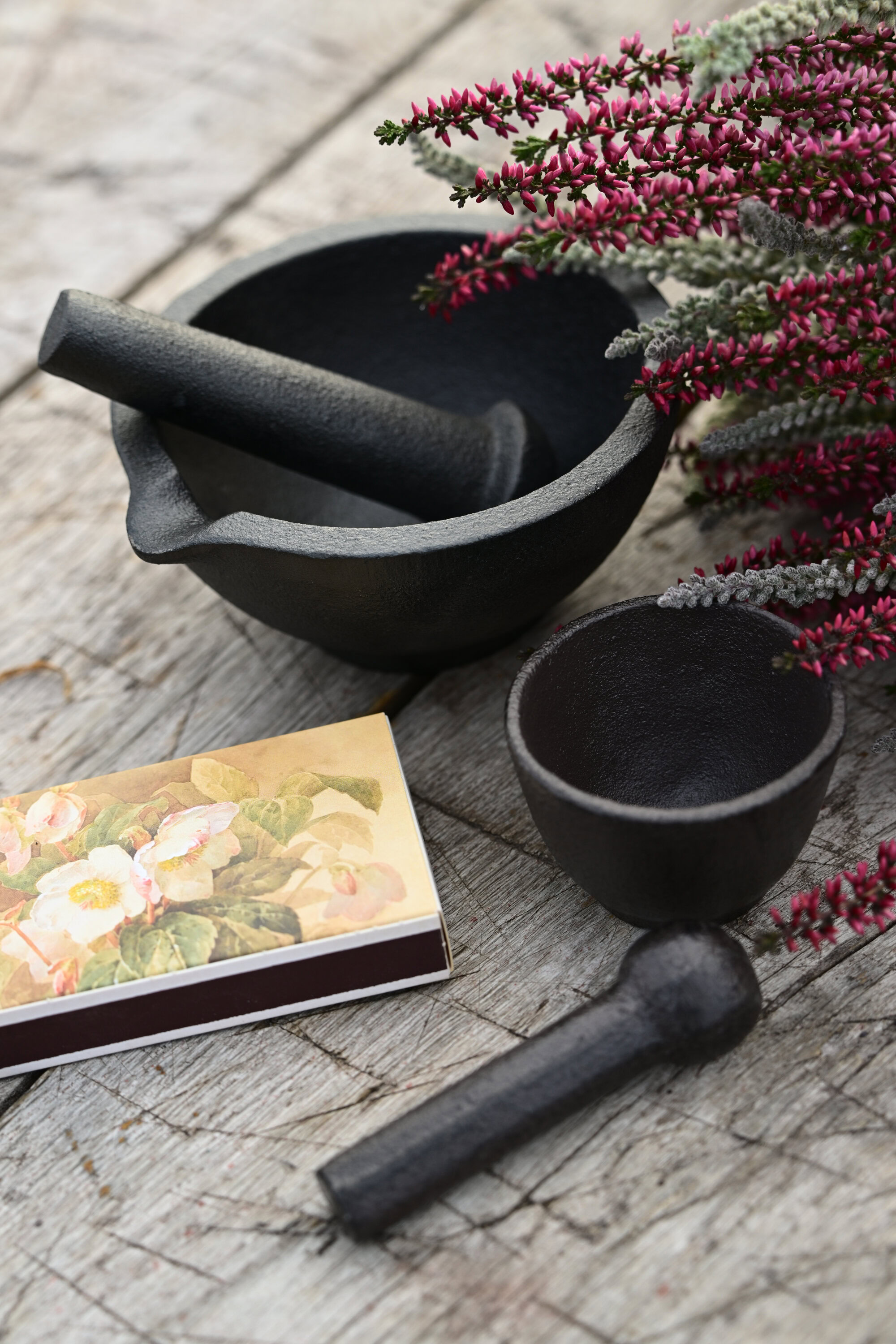 Vid, genuin mortel i gjutjärn som blir en vacker detalj i köket. Praktisk design med pip. Smörj gärna in med en livsmedelsgodkänd olja innan användning med mat.
