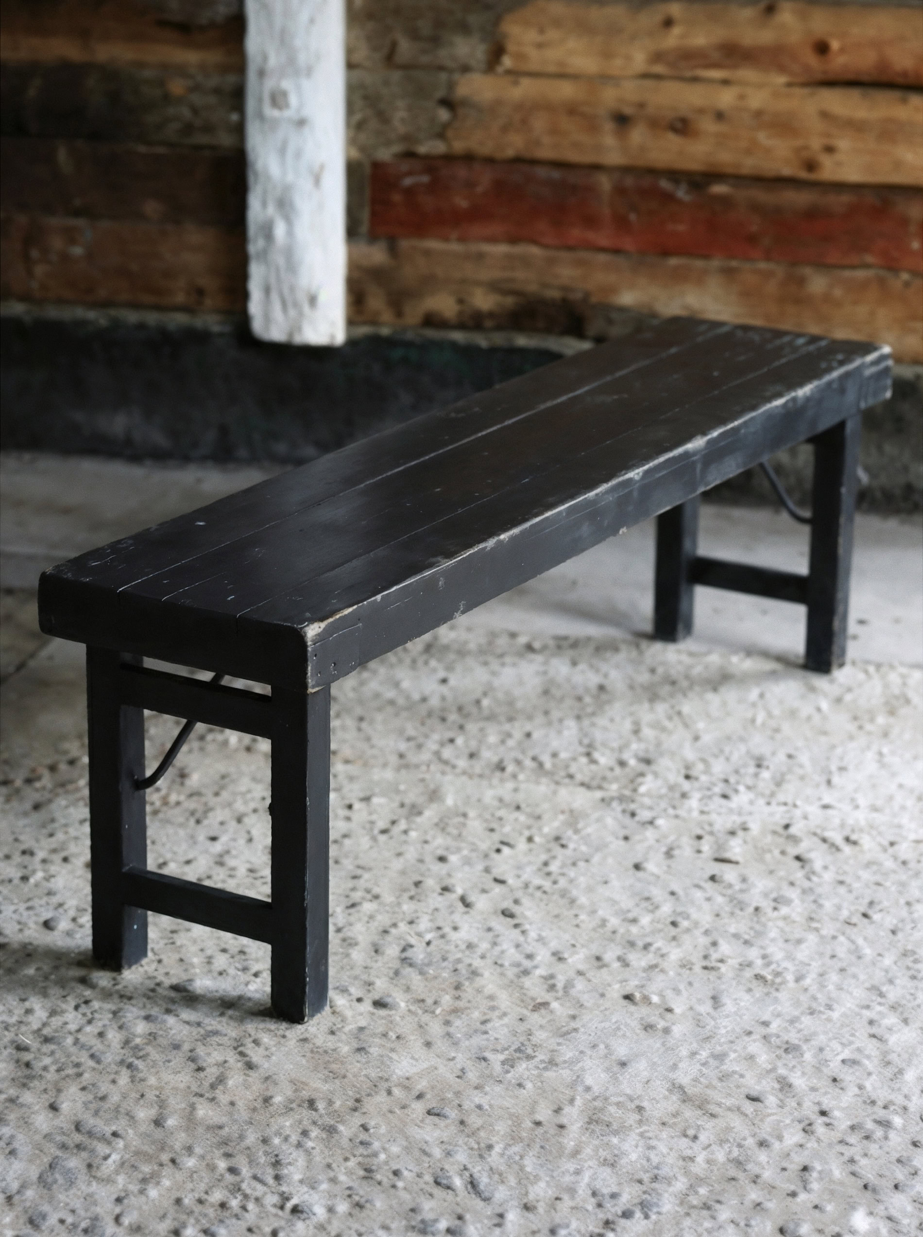 Träbänk återbrukat trä svart