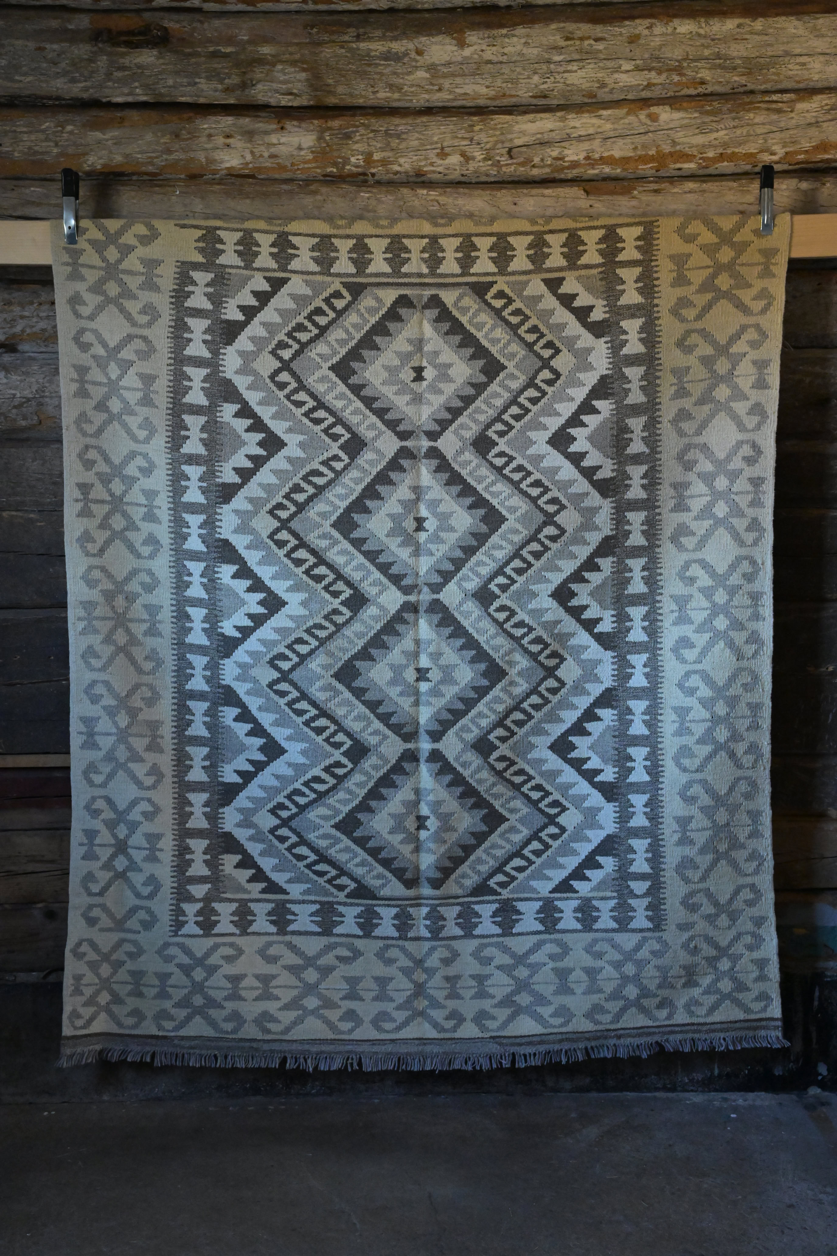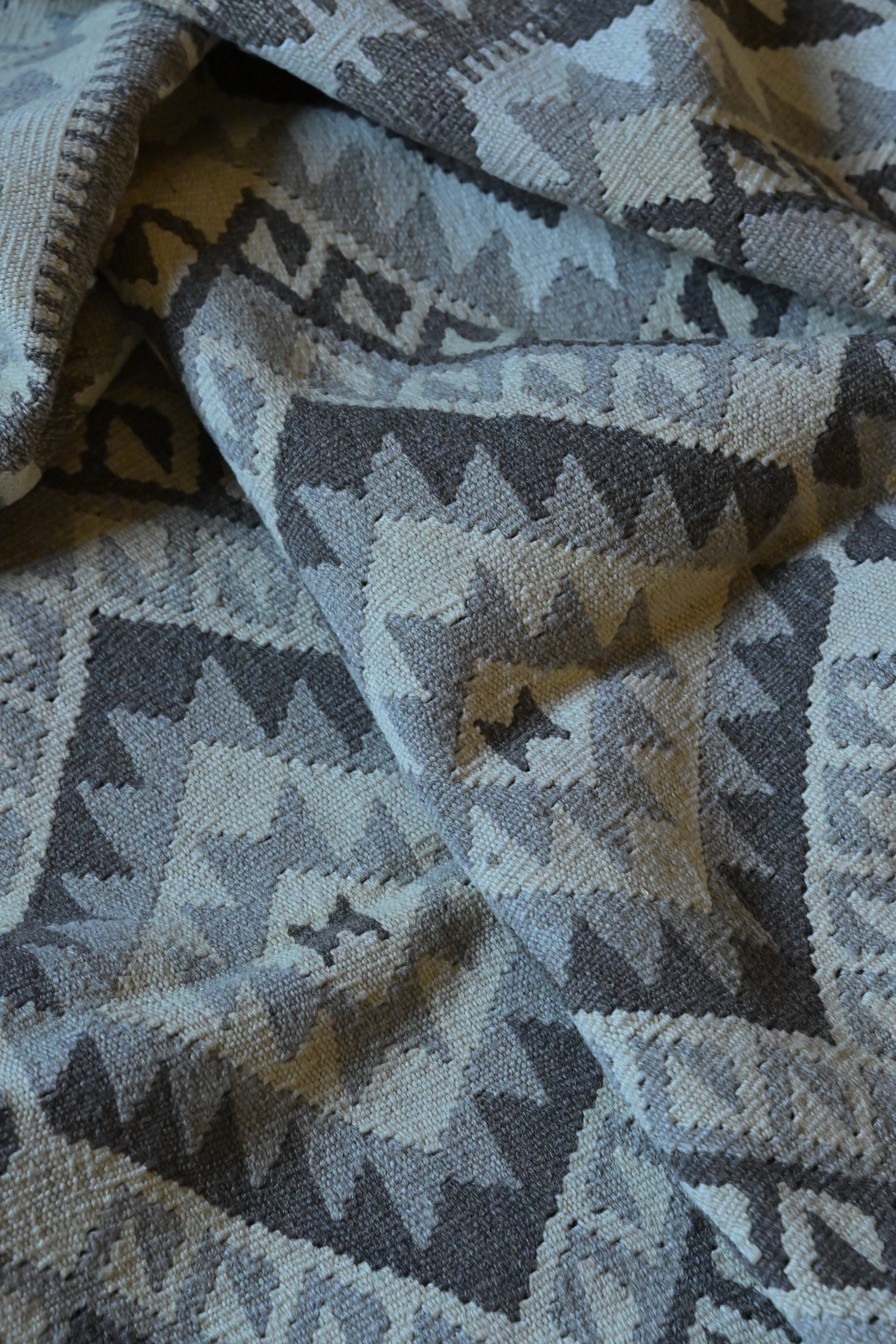 Handvävd kelimmatta av ull med modern mönsterbild. Mattorna tillverkas med traditionell kelimteknik och naturlig färgskala med geometriska symboler och romber. Kelim är persiska och är själva benämningen på hur kelimmattan är vävd, en typ av orientalisk slätvävnad, som närmast kan liknas vid röllakanstekniken. Mattan är vändbar, där mönstret framträder lika tydligt på båda sidor.