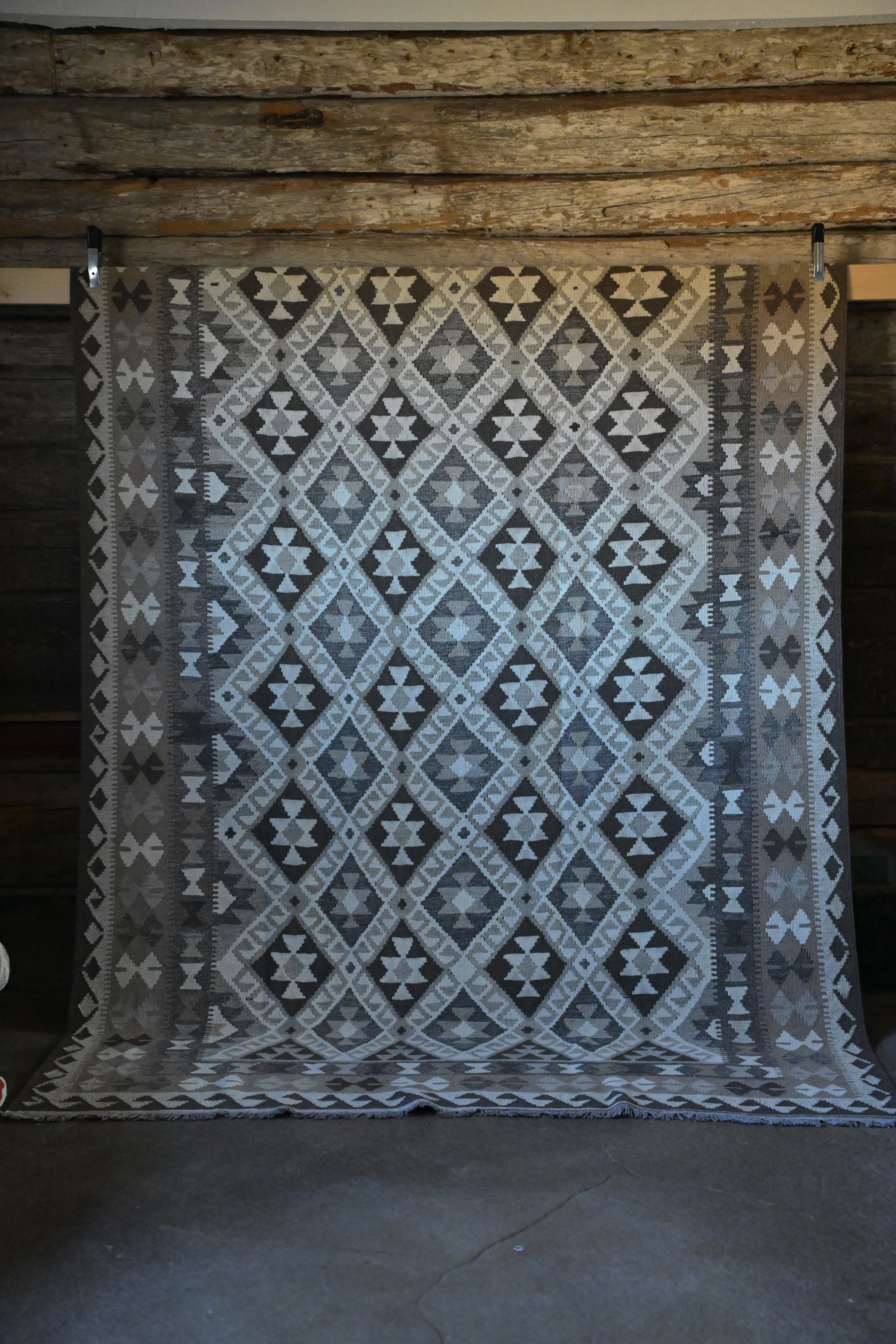 Denna matta är en del ur ett handplockat sortiment kelimmattor där varje matta är ett unikt, handvävt konstverk. Med slitstark, växtfärgad ull passar mattan väl in i våra nordiska hem – där färgen och den varma ullen sprider en ombonad känsla. I vår kollektion finns även kelimer med mer ovanliga mönsterbilder, smyckade med exempelvis blomstermotiv. Men också mattor i nedtonade, jordnära toner och dova pasteller.